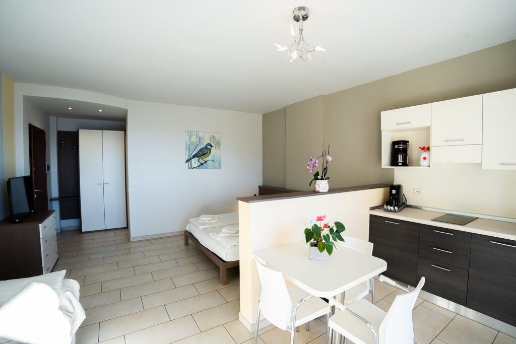Delizioso monolocale con terrazza privata che si apre sul magnifico paesaggio lacustre del Lago Maggiore. L’ambiente è luminoso e ben distribuito, con angolo cottura funzionale e tutte le dotazioni necessarie per una vacanza o un soggiorno extended confortevole e sereno.
